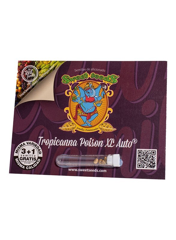 Versión autofloreciente, feminizada y de flor roja de nuestra Tropicanna Poison F1 Fast Version® (SWS85). Contiene genética de una de las variedades “Super Strong” de la familia Cookies más famosa de los EE. UU., la Tropicanna Cookies (Girl Scout Cookies x Tangie).